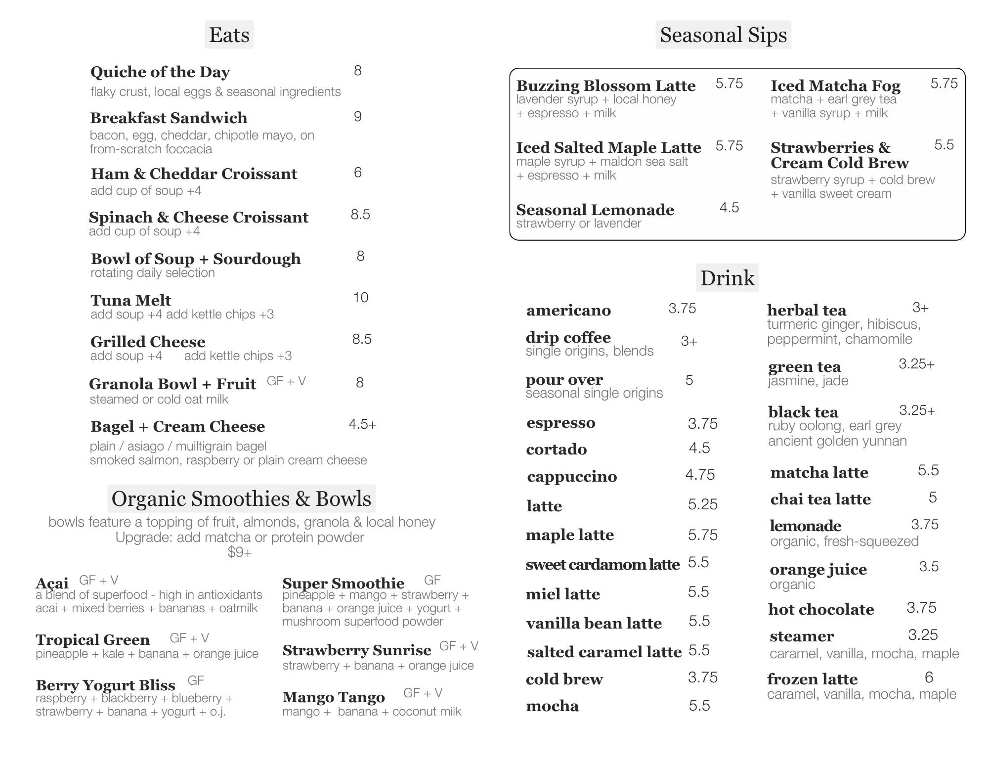 SPRING β26 CAFE MENU